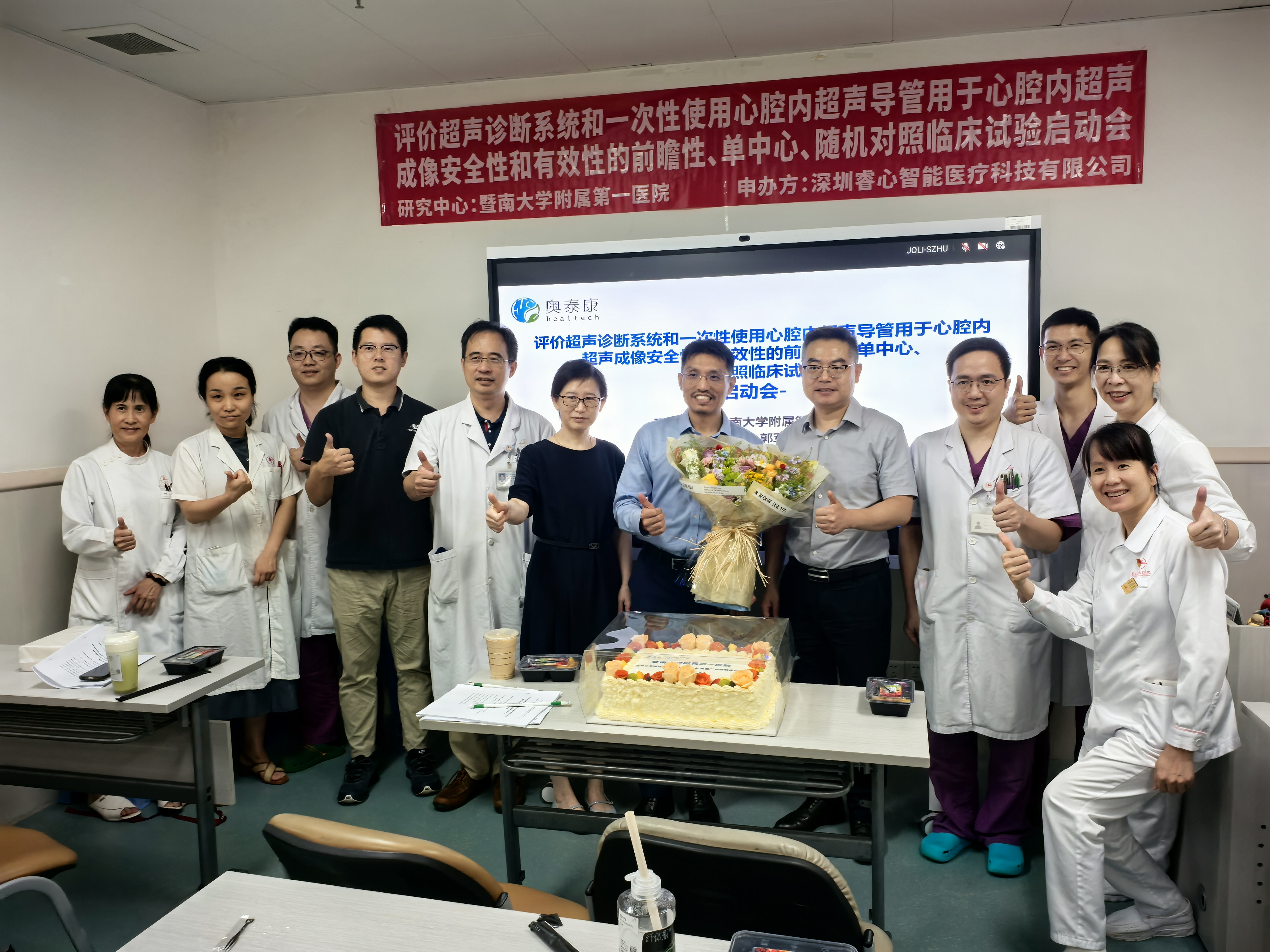 該臨床研究項目由暨南大學(xué)附屬第一醫(yī)院心內(nèi)科郭軍教授作為主要研究者,他在啟動會上表示:“心腔內(nèi)超聲心動圖(intracardiac echocardiography,ICE)具有實時成像、實時監(jiān)測術(shù)中并發(fā)癥以及良好的耐受性等優(yōu)點,近年來越來越多地應(yīng)用于多種類型的心臟介入操作。睿心醫(yī)療心腔內(nèi)超聲診斷系統(tǒng)和ICE導(dǎo)管,可以全程可視、精確顯示局部解剖結(jié)構(gòu)和心臟血流、血流速度等特點,很好地契合了臨床需求。希望睿心醫(yī)療心腔內(nèi)超聲診斷系統(tǒng)和一次性使用心腔內(nèi)超聲導(dǎo)管臨床試驗順利完成,早日在臨床使用,爭取把產(chǎn)品盡早推廣到全國乃至全世界。”